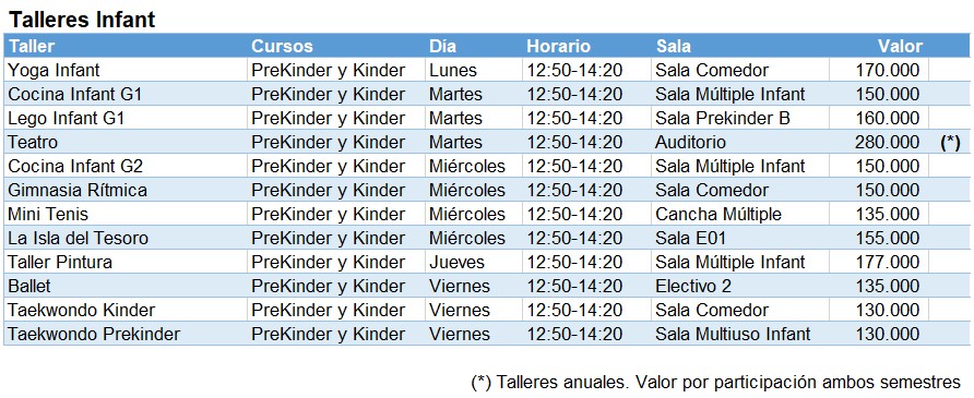 Resumen Talleres Primer semestre 2026